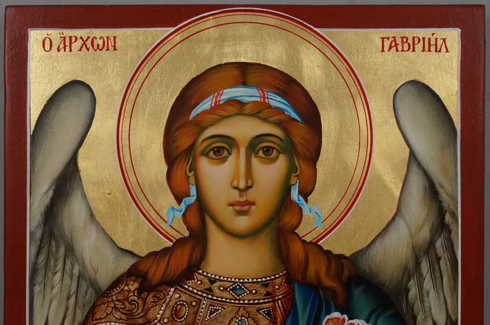 St Archangel Gabriel (decorated halo)Â –Â This is a premium quality icon painted using traditional technique.