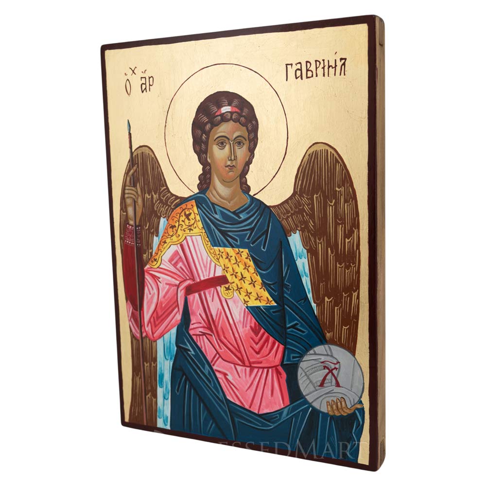This icon of Archangel Gabriel shows him as the messenger of God who announced the Incarnation. A fitting gift for annunciations, expectant mothers, or name days.
