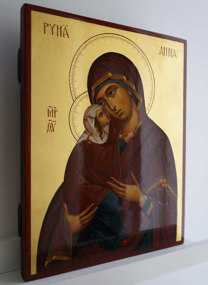 Beautiful hand-painted icon of St Anna (Saint Anne; Pyhä Anna). We take time and carefully photograph each icon. Please check out all photos!