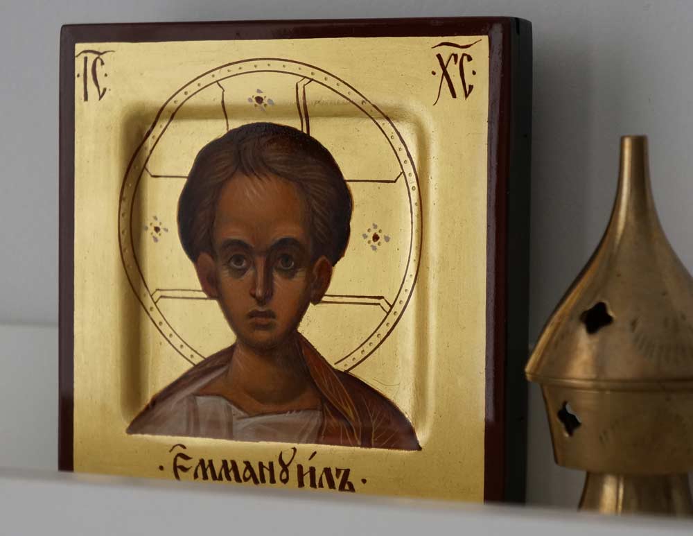 Beautiful hand-painted miniature icon of Christ “Emmanuel” – This is a premium quality mini icon made with pure 23kt gold leaf. Painted using traditional technique – egg tempera, solid lime wood panel, varnish, 23 karat gold leaf.