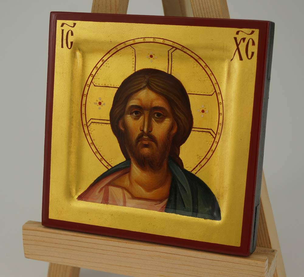 Beautiful hand-painted miniature icon of Jesus Christ Pantocrator (hand-engraved) – This is a premium quality mini icon made with pure 23kt gold leaf. Painted using traditional technique – egg tempera, solid lime wood panel, varnish, 23 karat gold leaf.