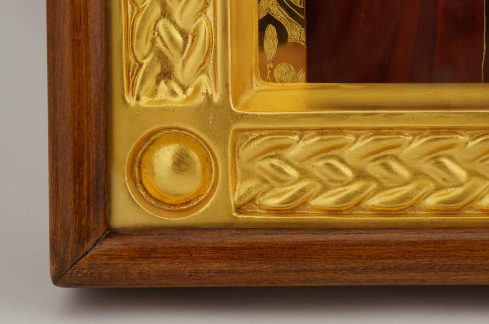 Most of our icons are painted on solid natural wood boards (0.8 inch thick). The rest of the materials used are strongly individual and depend on the techniques used by every iconographer. In most cases they use egg tempera, oil or powder paints, varak, gold leaf (foil), varnish and other materials. Following the Byzantine Art traditions, every icon is layered with a linen cloth, glued and hand sanded to a smooth finish.