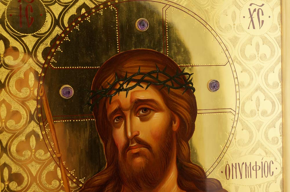 Hand-painted Orthodox icon of Christ the Bridegroom (O Nymphios). This is a premium quality icon made with pure 24K gold leaf. Painted using traditional technique – egg tempera, lime wood panel with support slats on the back, varnish, 24 karat gold leaf.