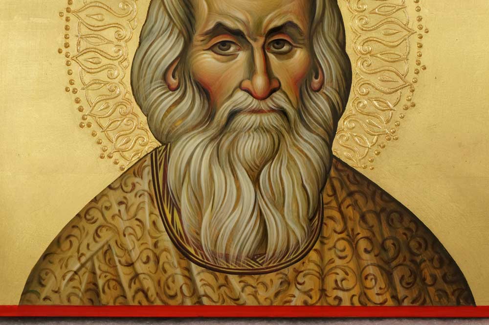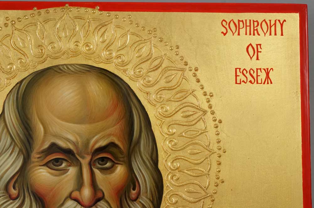 Holy and Venerable Sophrony of Essex – This is a premium quality icon made with pure 23kt gold leaf. Painted using traditional technique – egg tempera, solid lime wood panel with slats on the back, varnish, 23 karat gold leaf.