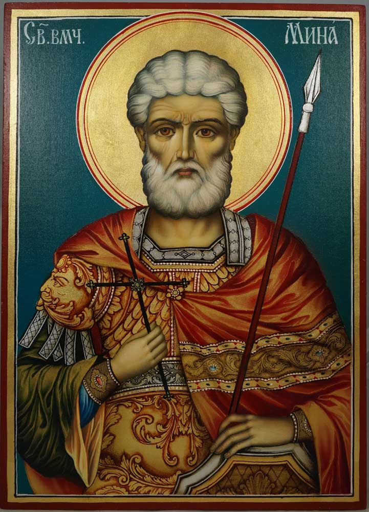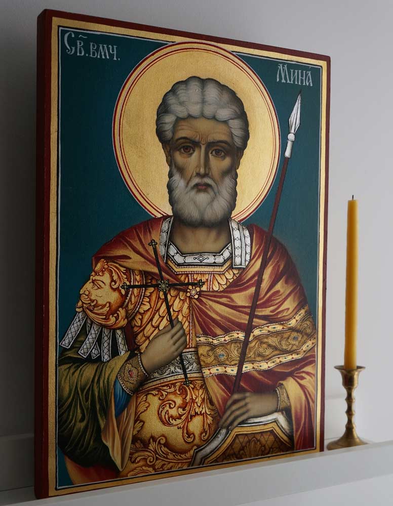 Martyr Menas of Egypt (Minas, Mennas, Mena) – This is a premium quality icon painted using traditional technique.