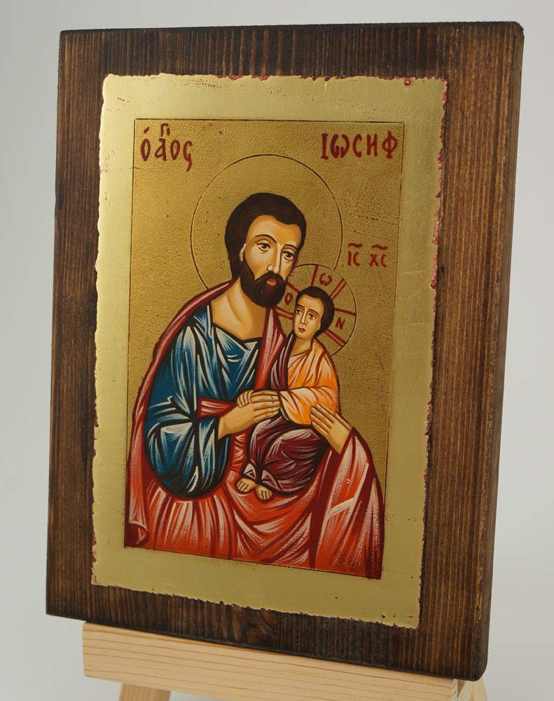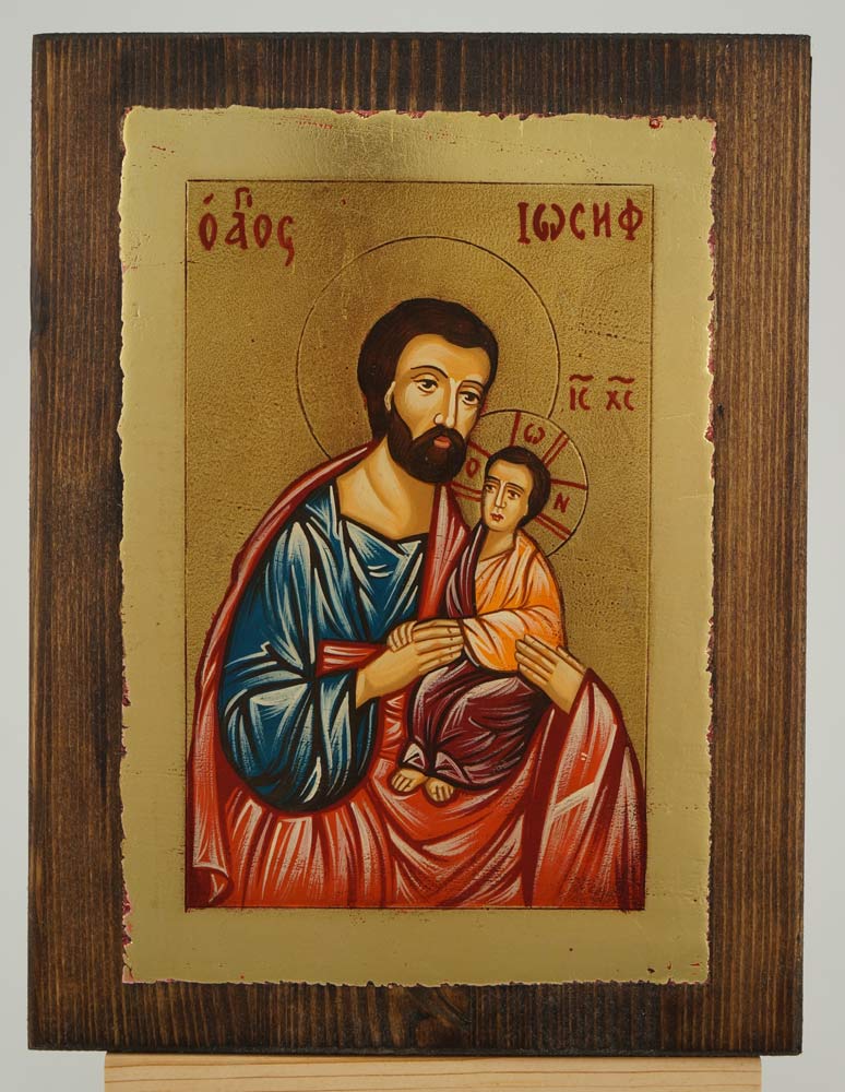 Beautiful hand-painted icon of Saint Joseph and Baby Jesus (small). We take time and carefully photograph each icon. Please check out all photos!