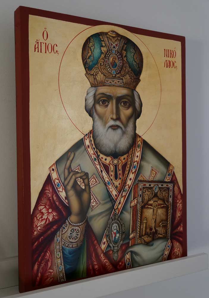 Saint Nicholas Archbishop of Myra – This is a premium quality icon painted using traditional technique.