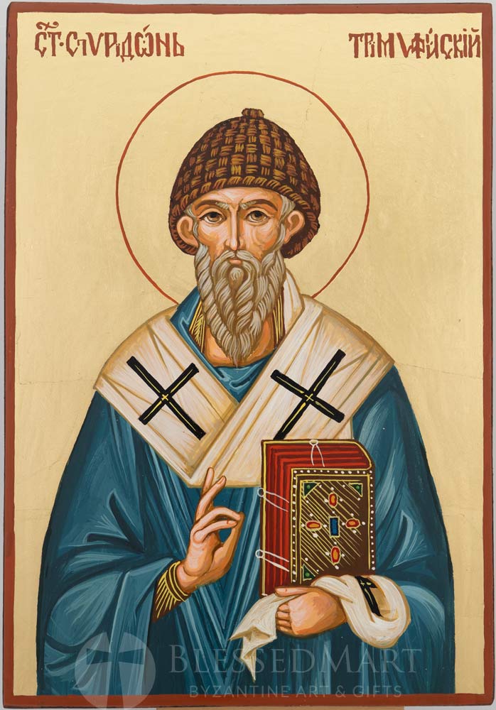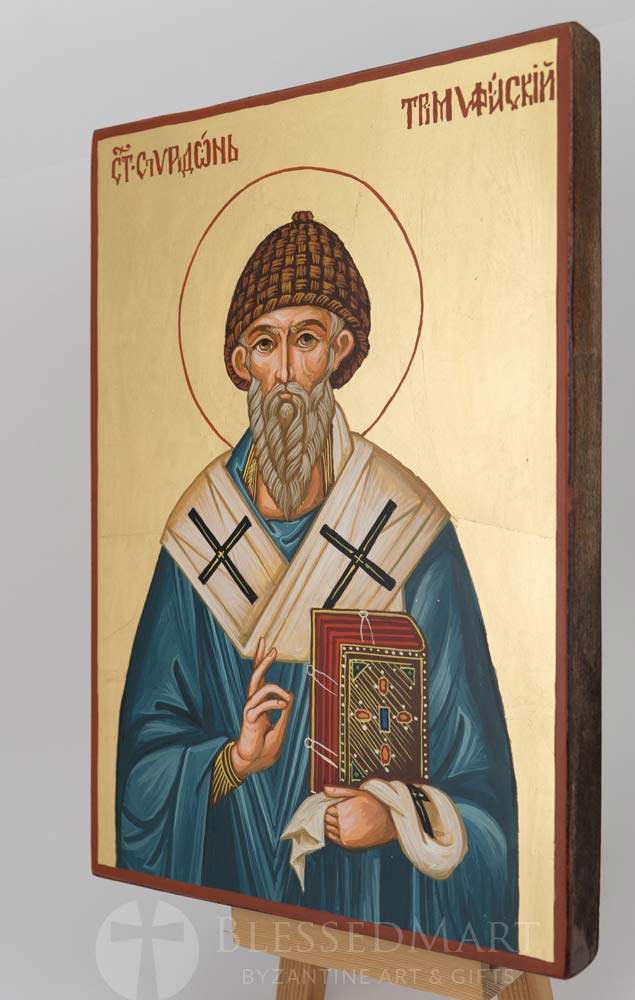 Beautiful hand-painted icon of Saint Spyridon Bishop of Trimythous. We take time and carefully photograph each icon. Please check out all photos.