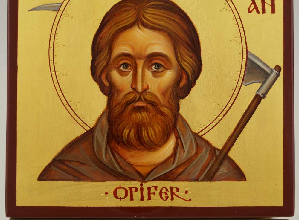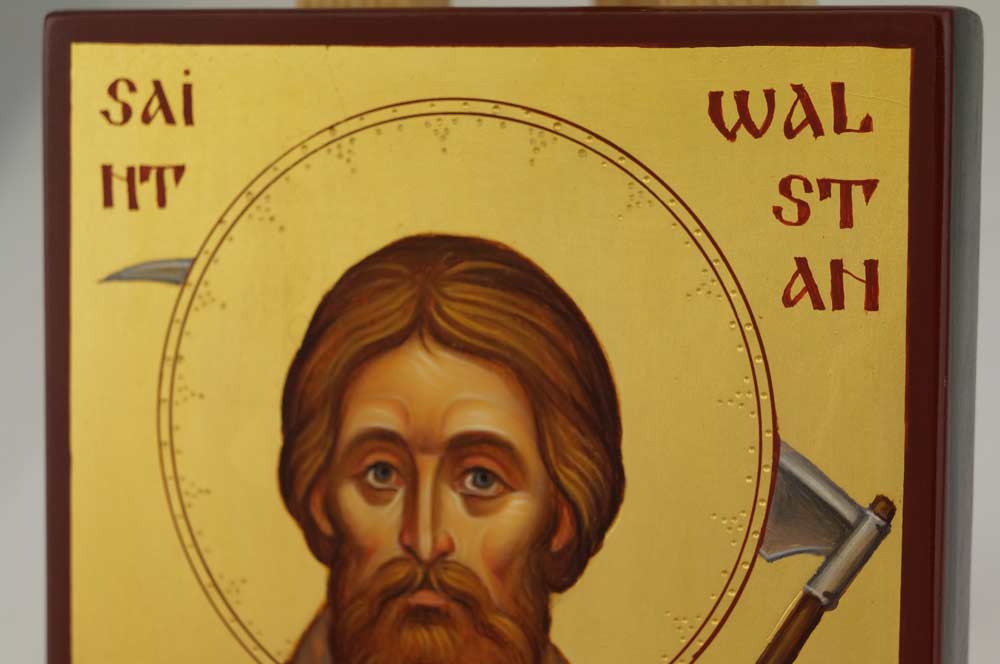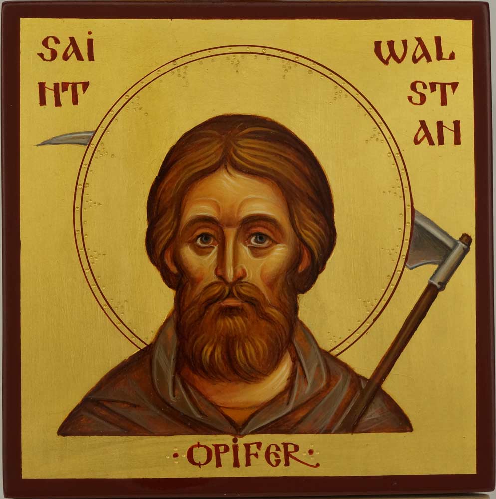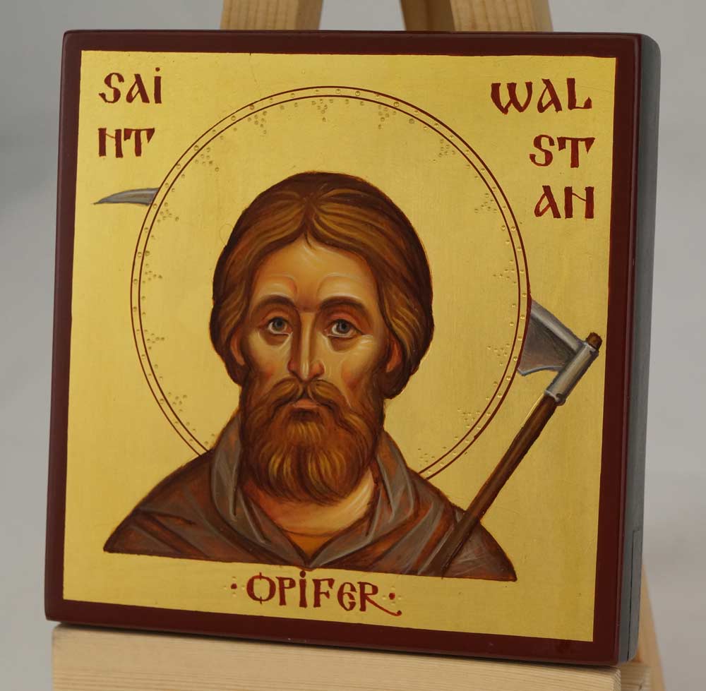 Beautiful hand-painted miniature icon of Saint Walstan of Bawburgh – This is a premium quality mini icon made with pure 23kt gold leaf. Painted using traditional technique – egg tempera, solid lime wood panel, varnish, 23 karat gold leaf.