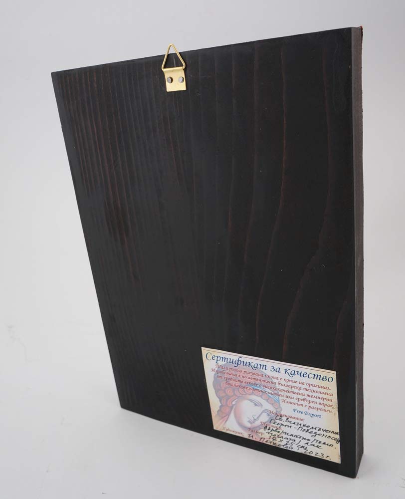 Most of our icons are painted on solid natural wood boards (0.8 inch thick). The rest of the materials used are strongly individual and depend on the techniques used by every iconographer. In most cases they use egg tempera, oil or powder paints, varak, gold leaf (foil), varnish and other materials. Following the Byzantine Art traditions, every icon is layered with a linen cloth, glued and hand sanded to a smooth finish.