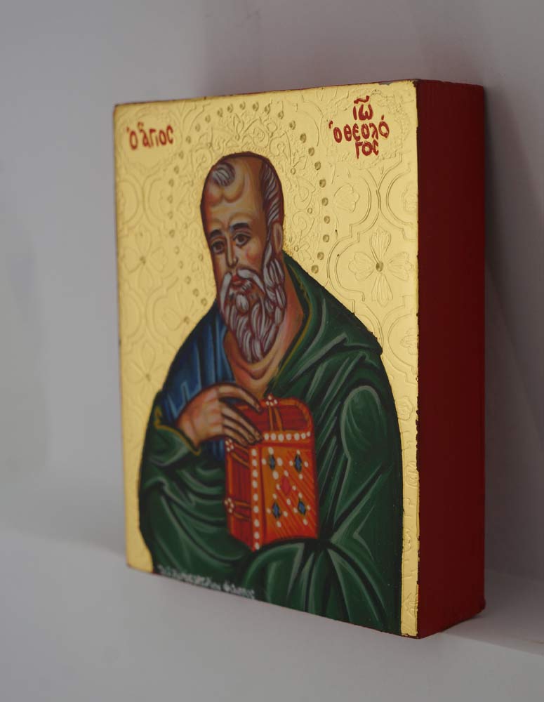 St John the Theologian Icon (polished gold miniature) – this hand-painted icon features genuine 24kt polished gold and hand-engraved decorations.