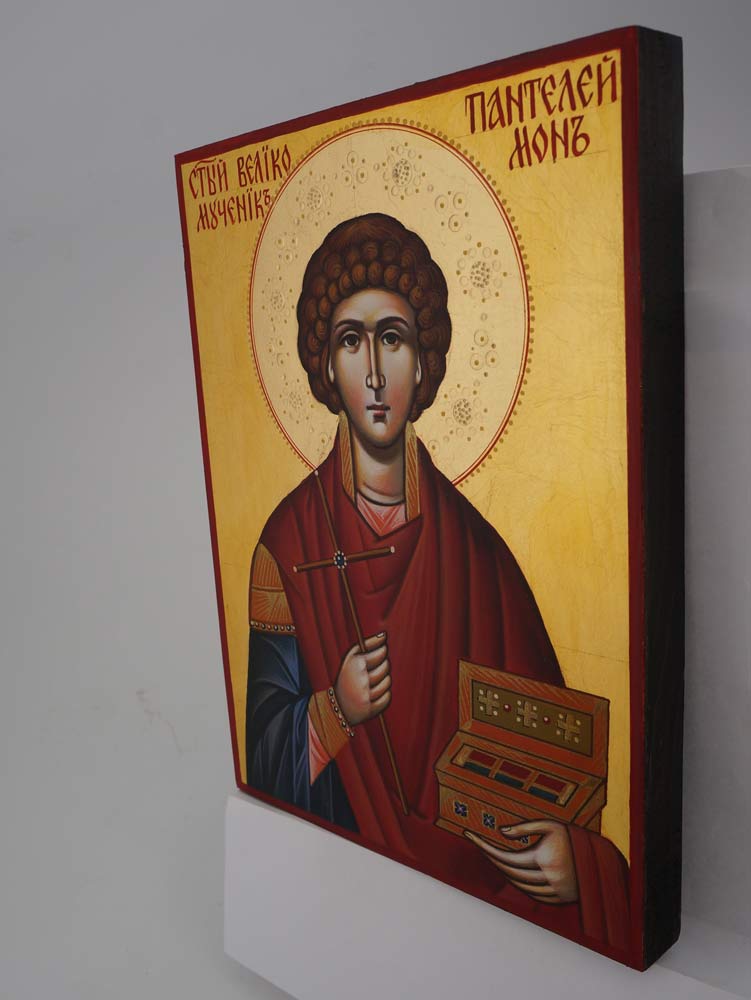 Hand-painted Orthodox icon of St Panteleimon – This is a premium quality icon painted using traditional technique