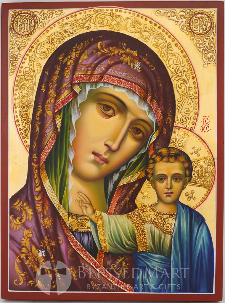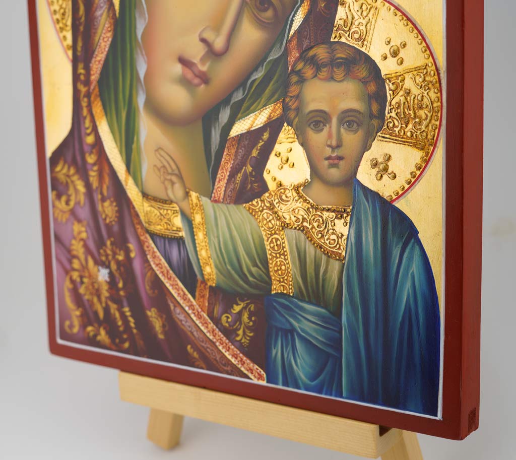 Hand-painted icon “Kazanskaya Mother of God (halo relief)” (Theotokos Hodegetria) – This is a premium quality icon painted using traditional technique.
