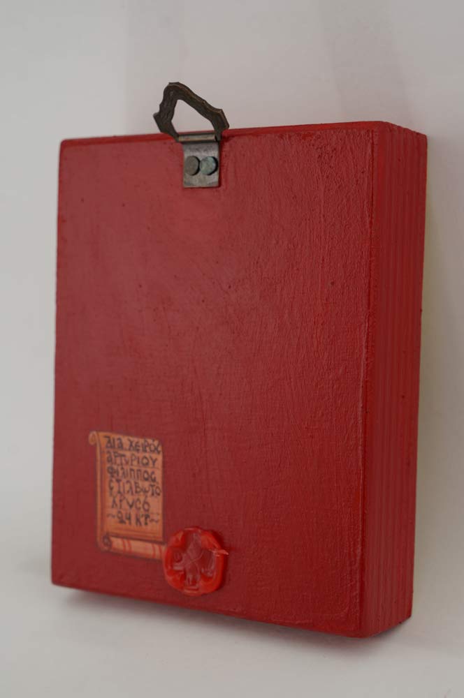 Most of our icons are painted on solid natural wood boards (0.8 inch thick). We offer icons painted on MDF boards as well. The rest of the materials used are strongly individual and depend on the techniques used by every iconographer. In most cases they use tempera, oil or powder paints, varak, gold leaf (foil), varnish and other synthetic materials. Following the Byzantine Art traditions, every icon is layered with a linen cloth, glued and hand sanded to a smooth finish.