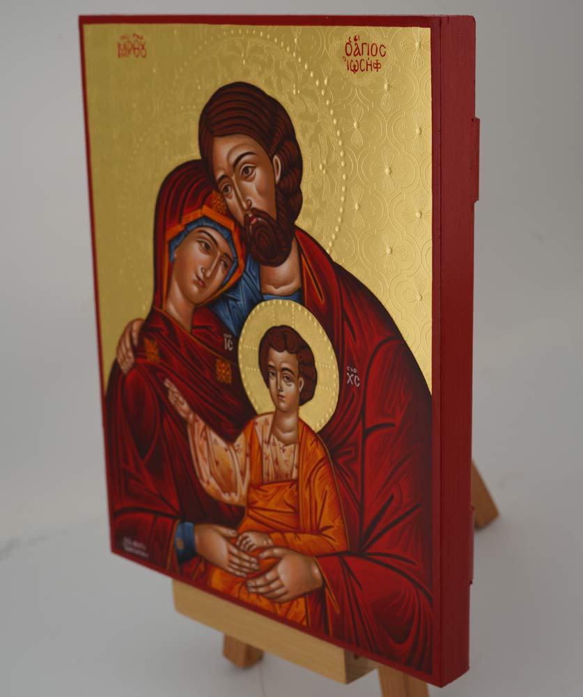 The Holy Family Icon (polished gold) – this hand-painted icon features genuine 24kt polished gold and hand-engraved decorations.