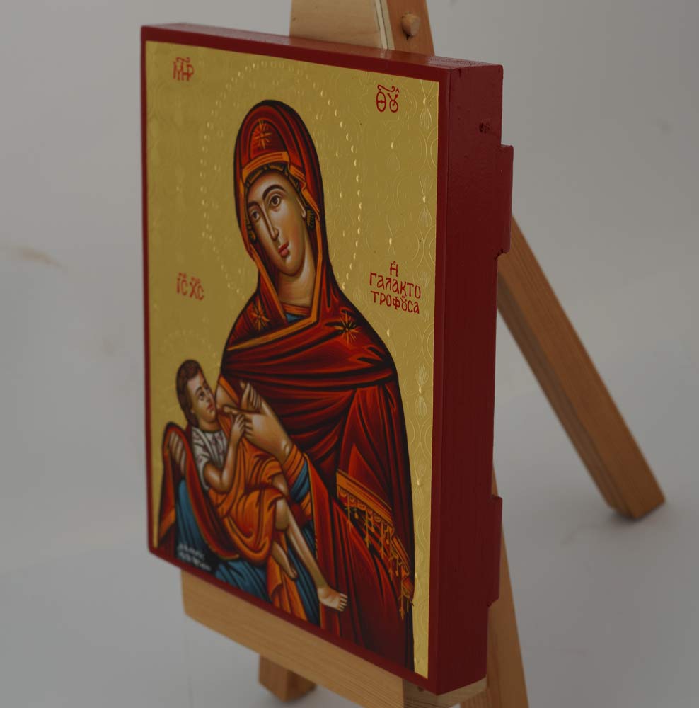 Theotokos Milk-Giver Icon (polished gold) – this hand-painted icon features genuine 24kt polished gold and hand-engraved decorations.