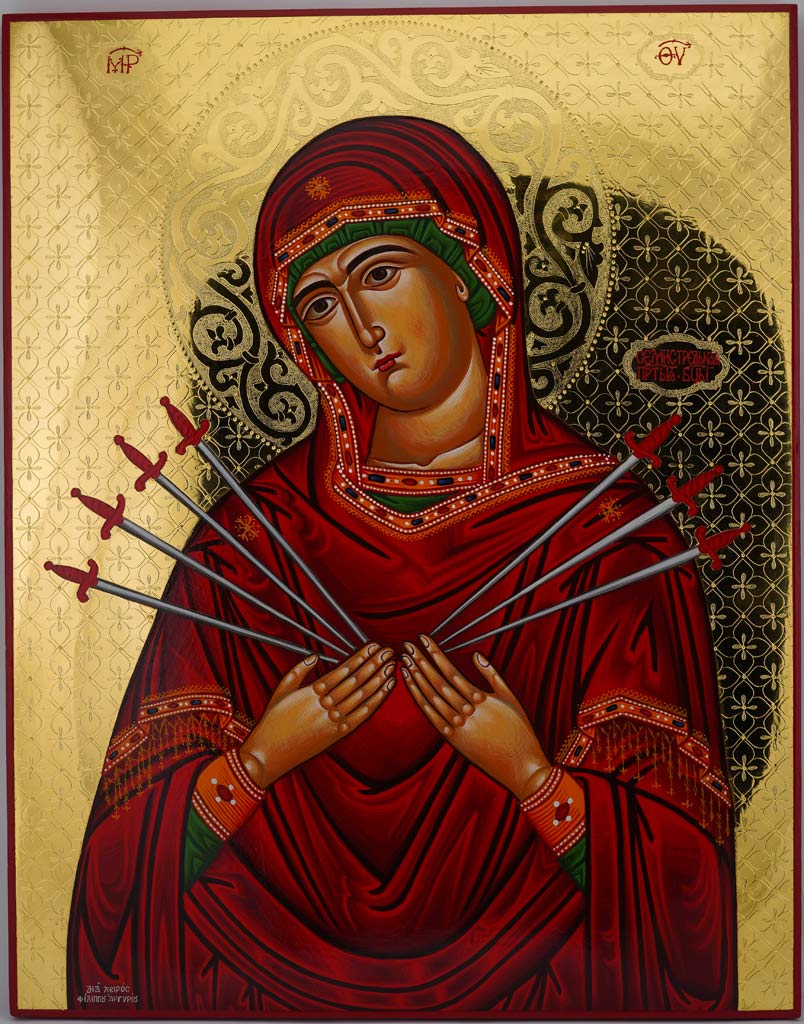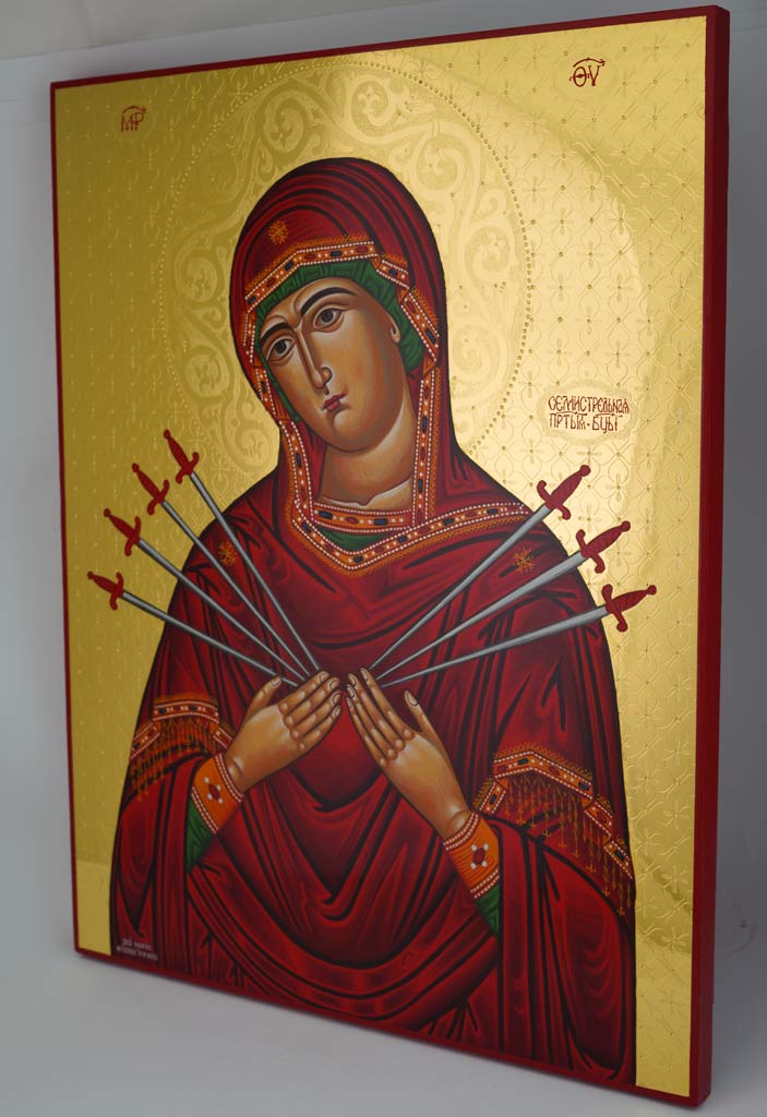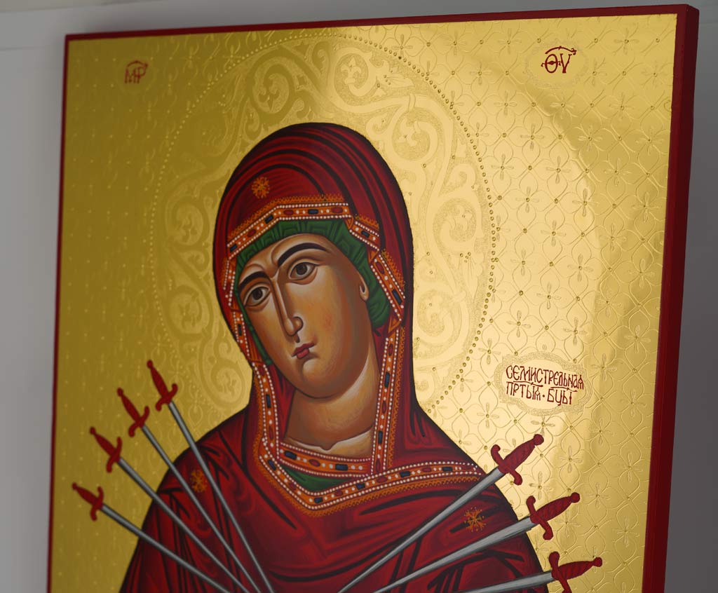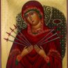 Theotokos Softener of Evil Hearts Icon (polished gold) – this hand-painted icon features genuine 24kt polished gold and hand-engraved decorations.