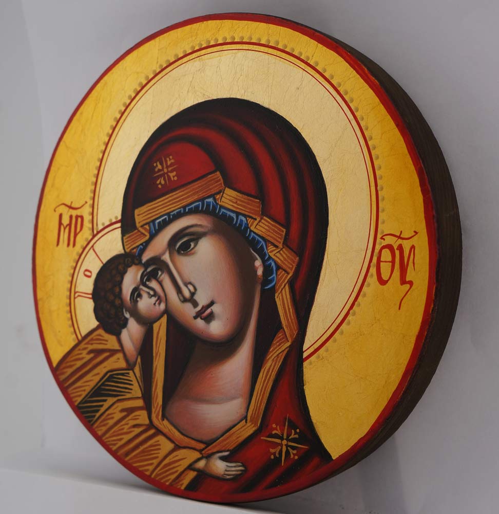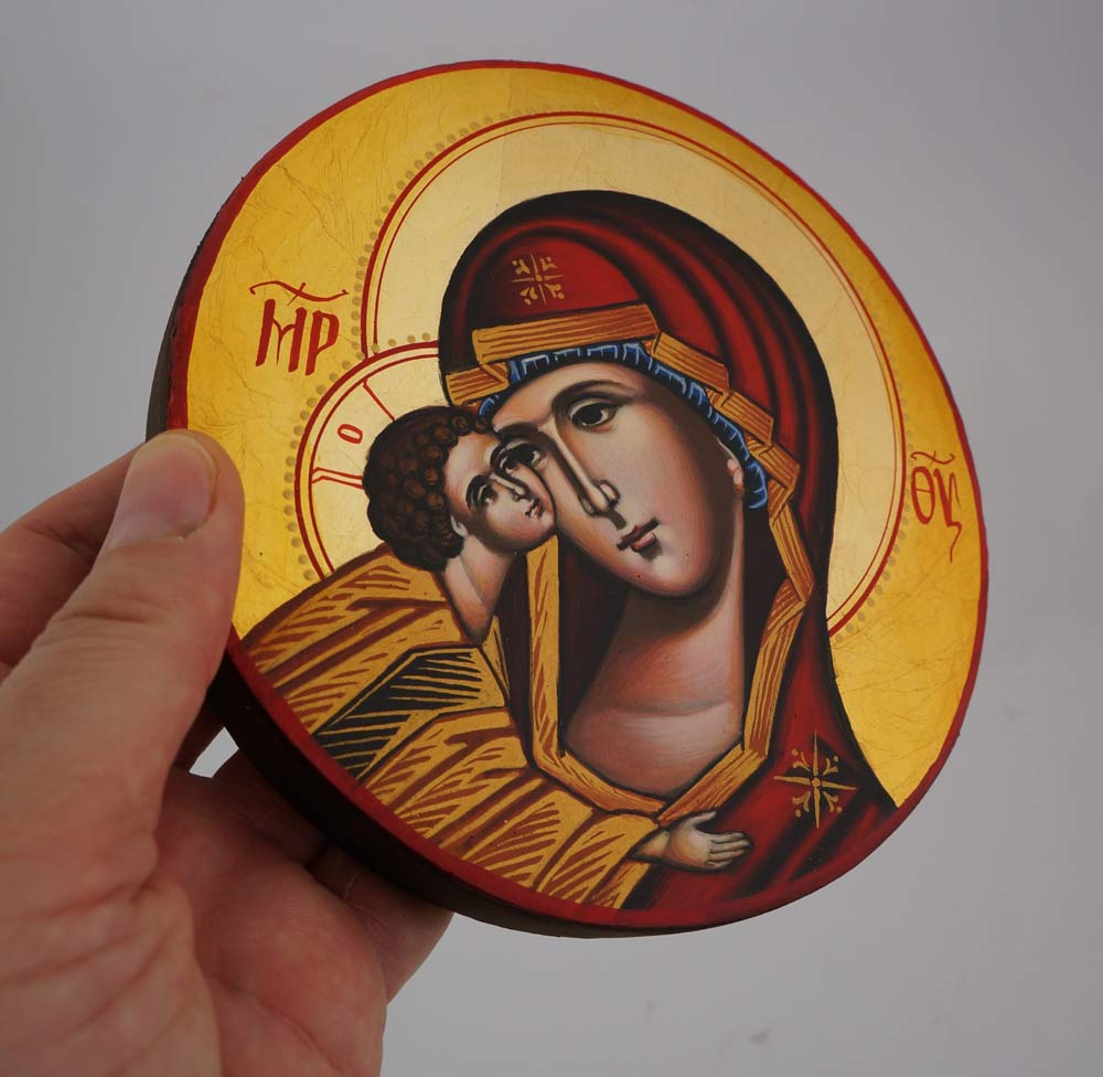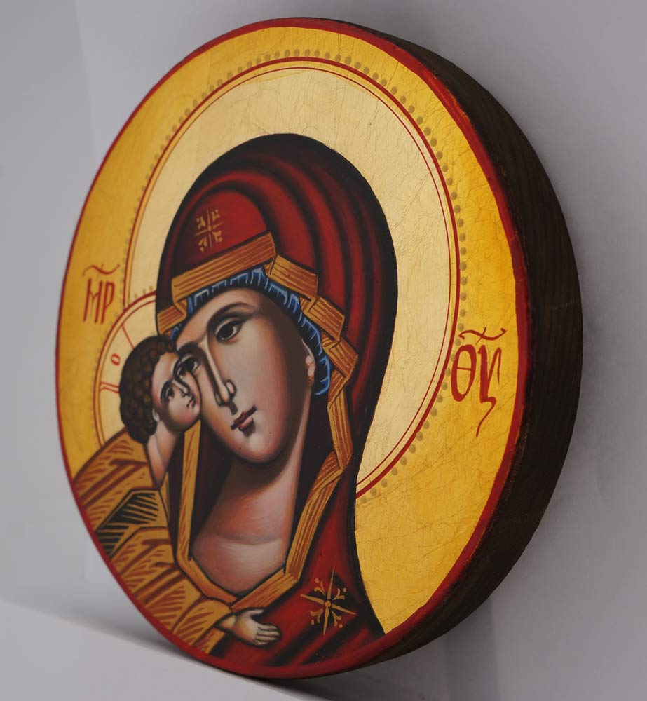 Theotokos Tenderness Round Icon – This is a premium quality icon painted using traditional technique