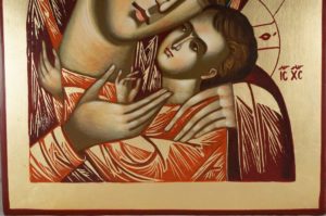 Hand-painted icon of Virgin Mary Tender Mercy (Theotokoss Eleusa, Sweet Kissing)