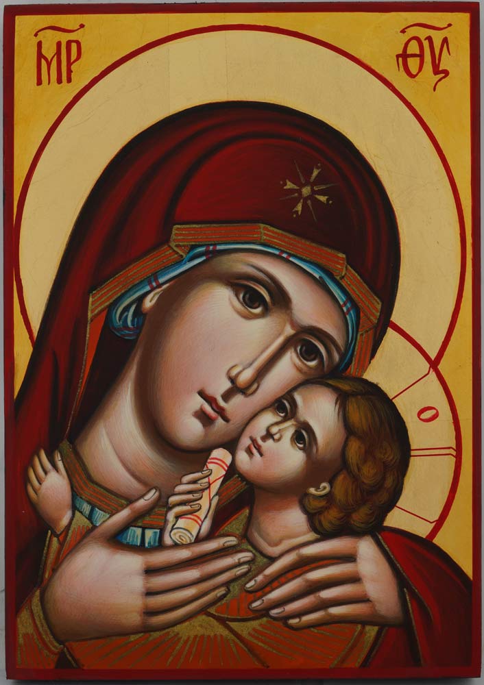 Hand-painted Orthodox icon of Virgin Mary Tenderness – This is a premium quality icon painted using traditional technique