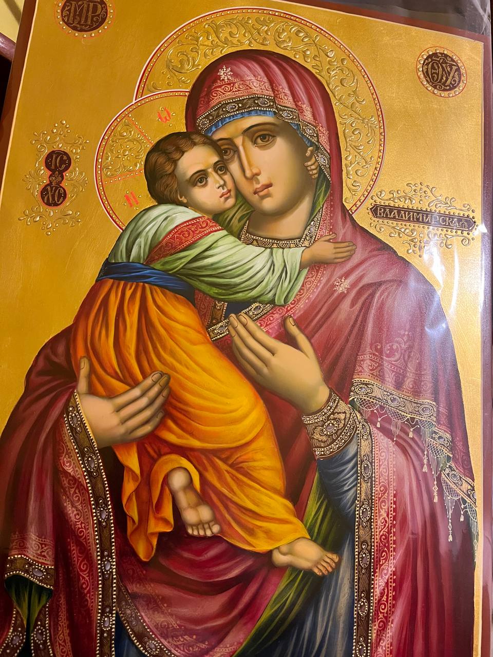 Hand-painted icon “Vladimirskaya Mother of God” (Theotokos Eleusa) – This is a premium quality icon painted using traditional technique.