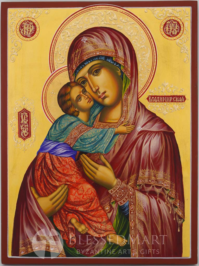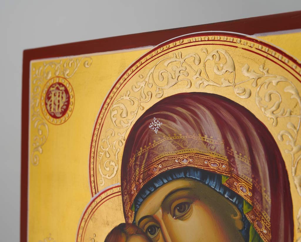 Hand-painted icon “Vladimirskaya Mother of God” (Theotokos Eleusa) – This is a premium quality icon painted using traditional technique.
