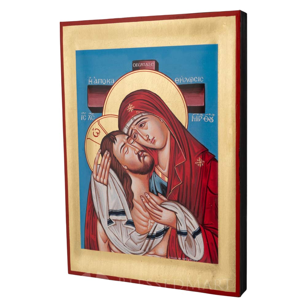 The Pieta Icon – known in Orthodox tradition as the Lamentation of the Theotokos – depicts the Virgin Mary holding the lifeless body of her Son after His Crucifixion. This icon expresses the deep sorrow of the Mother of God, yet also reflects her unwavering faith in God’s plan of salvation.
