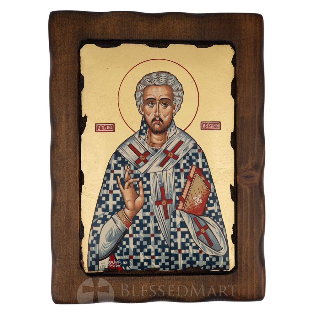 According to tradition, after his resurrection, Lazarus became the first Bishop of Kition (modern-day Larnaca, Cyprus), where he faithfully served the Church until his repose. In icons, he is often shown as a bishop holding a Gospel, symbolizing his ministry, or as the friend of Christ connected to the miracle of his resurrection.