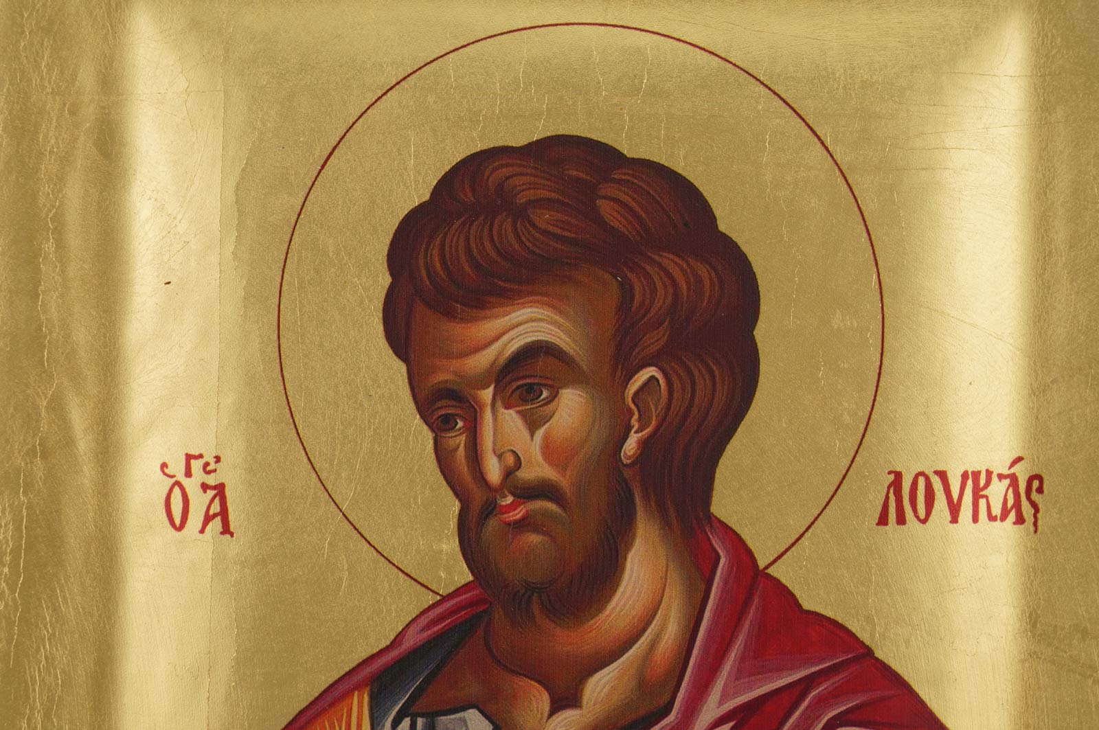 Handmade Greek Orthodox icon of St Luke the Evangelist – This is a premium quality silkscreen icon handmade with gold leaf on canvas and solid wood.